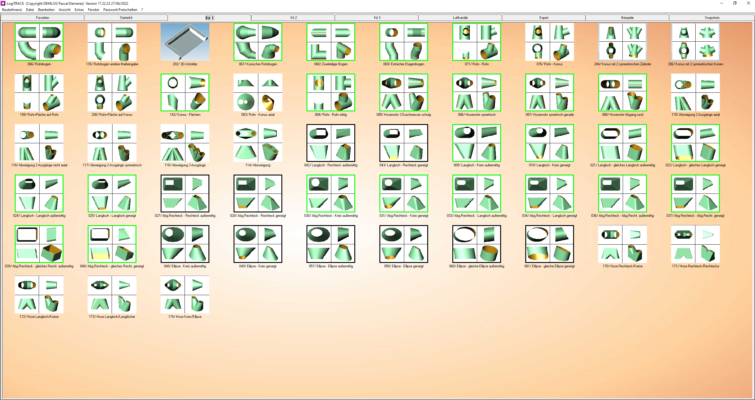 - Bauteil auswählen, aus Kits von über 200 gängige Trichter und Formen