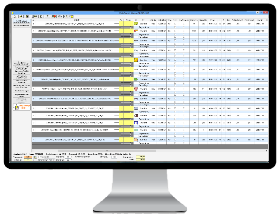 Die ermittelten Profile werden gezählt, vermessen und kategorisiert, um anschließend gemeinsam mit den Blechteilen an die PROfirst Bauteilkalkulation übergeben und dort kalkuliert zu werden.